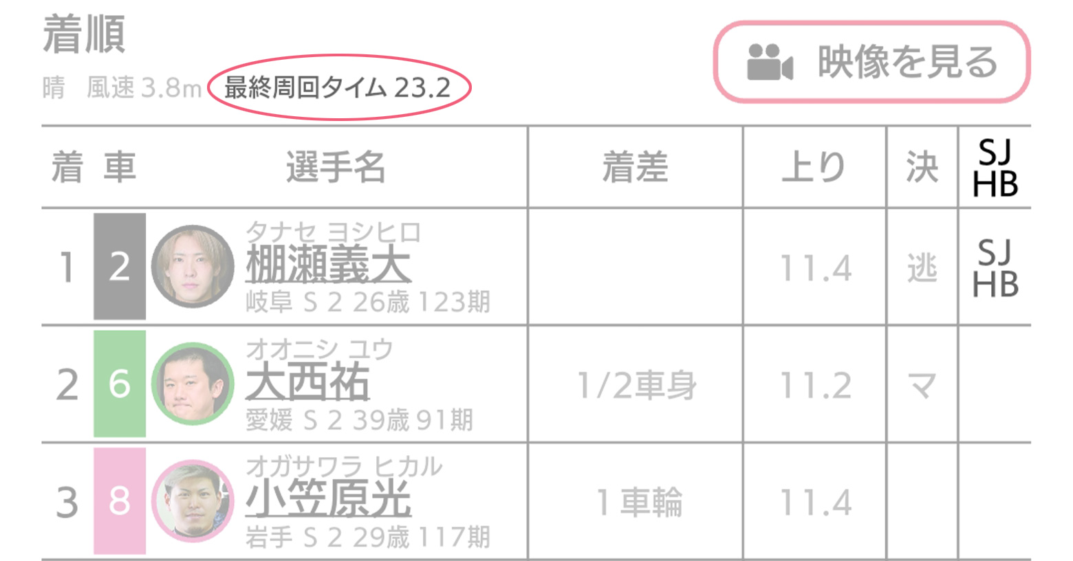 ですが、これも考えられる理由があります。それは短走路ゆえに早めの赤板周回でスピードが上がり、ラスト一周ではスピードが落ちていることが考えられるからです。