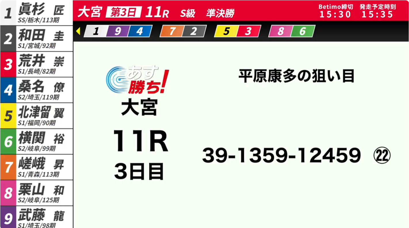 【あす勝ち!コラム】大宮記念9回優勝の平原康多さんによる「2日目チェック」&「準決勝予想」!