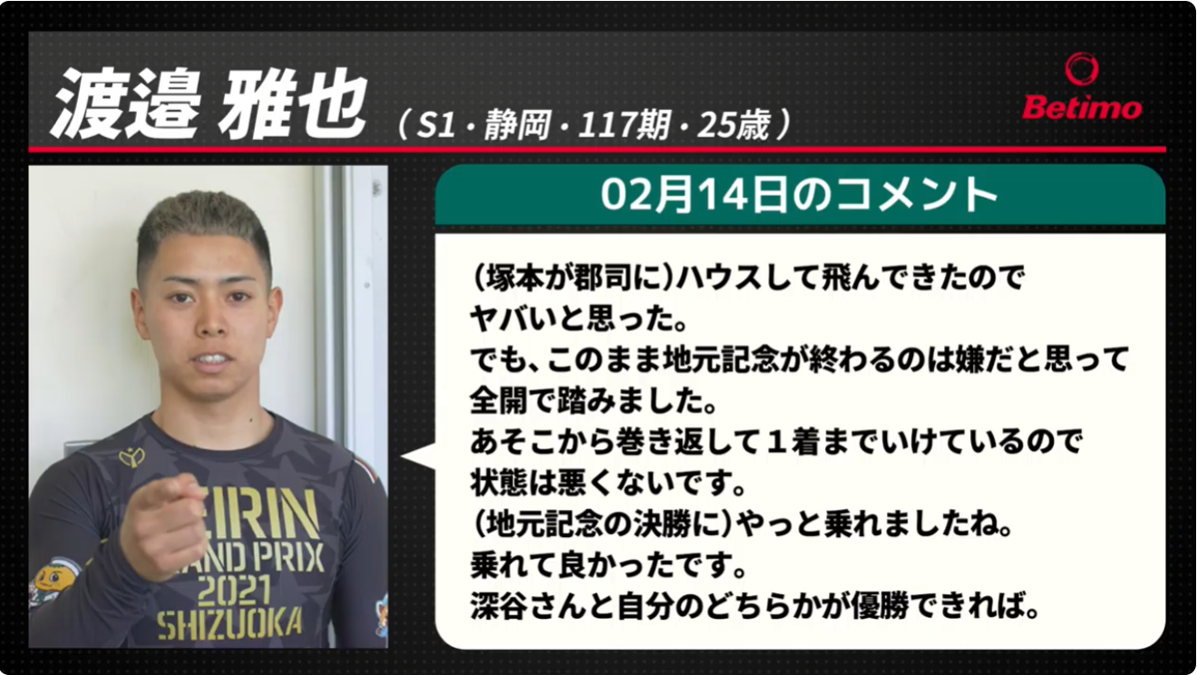 最後失速してしまった郡司選手については、叩いた相手の後藤大輝選手が強かったので踏まされたのではという見解。明日の敗者戦では巻き返しに期待したいですね。