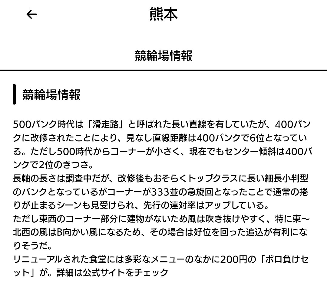 熊本競輪場のセンター傾斜は400バンクでも松阪に次いで2番目に立っている