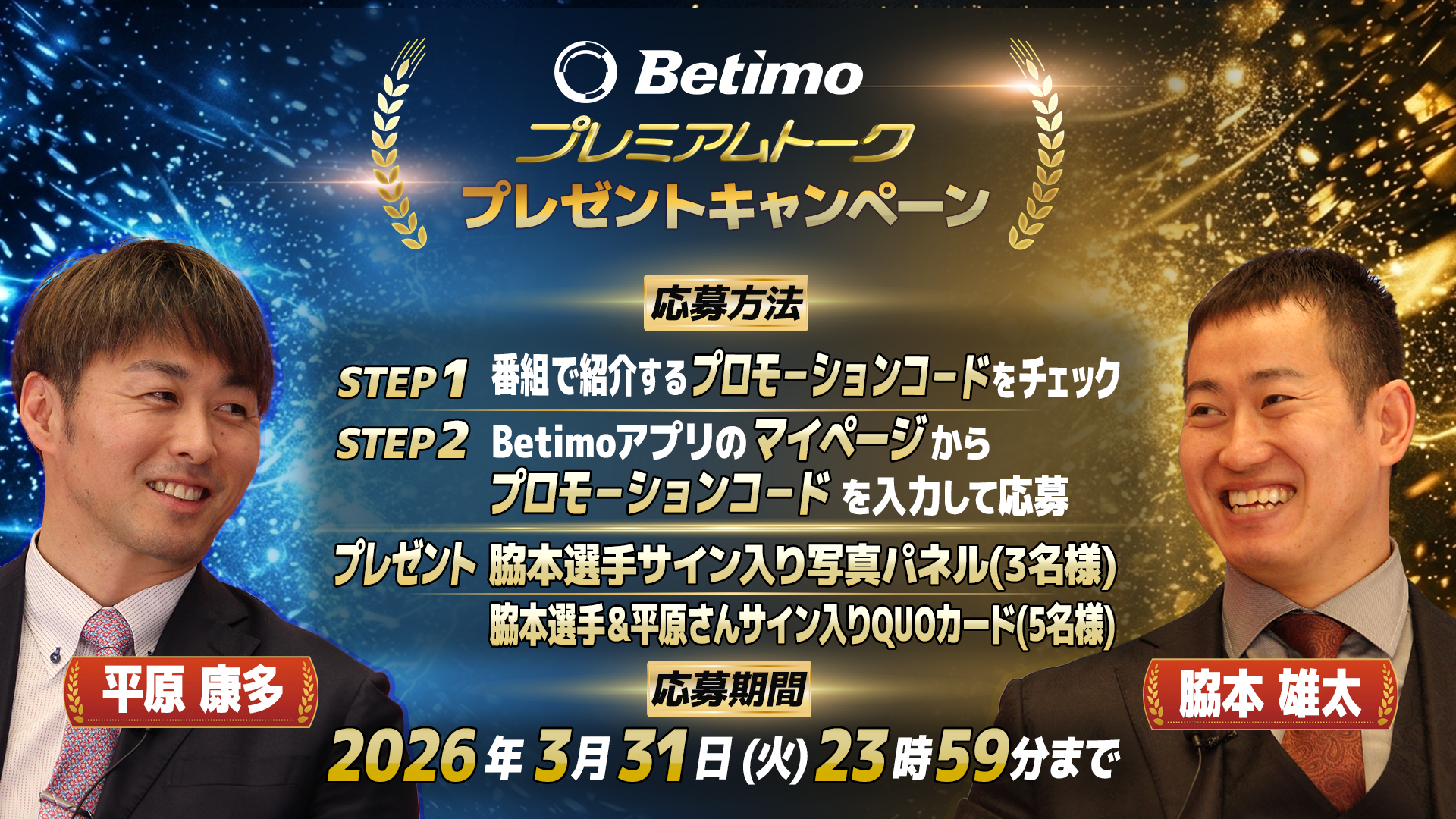 『プレミアムトーク』「平原康多×脇本雄太」編。Youtubeチャンネル「Betimo KEIRIN」にて3月13日23時15分(予定)プレミアム公開されます。