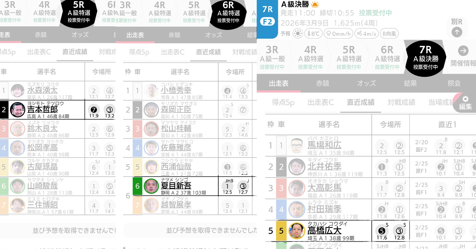 準決勝6R3着 予選1着 競走得点84.57