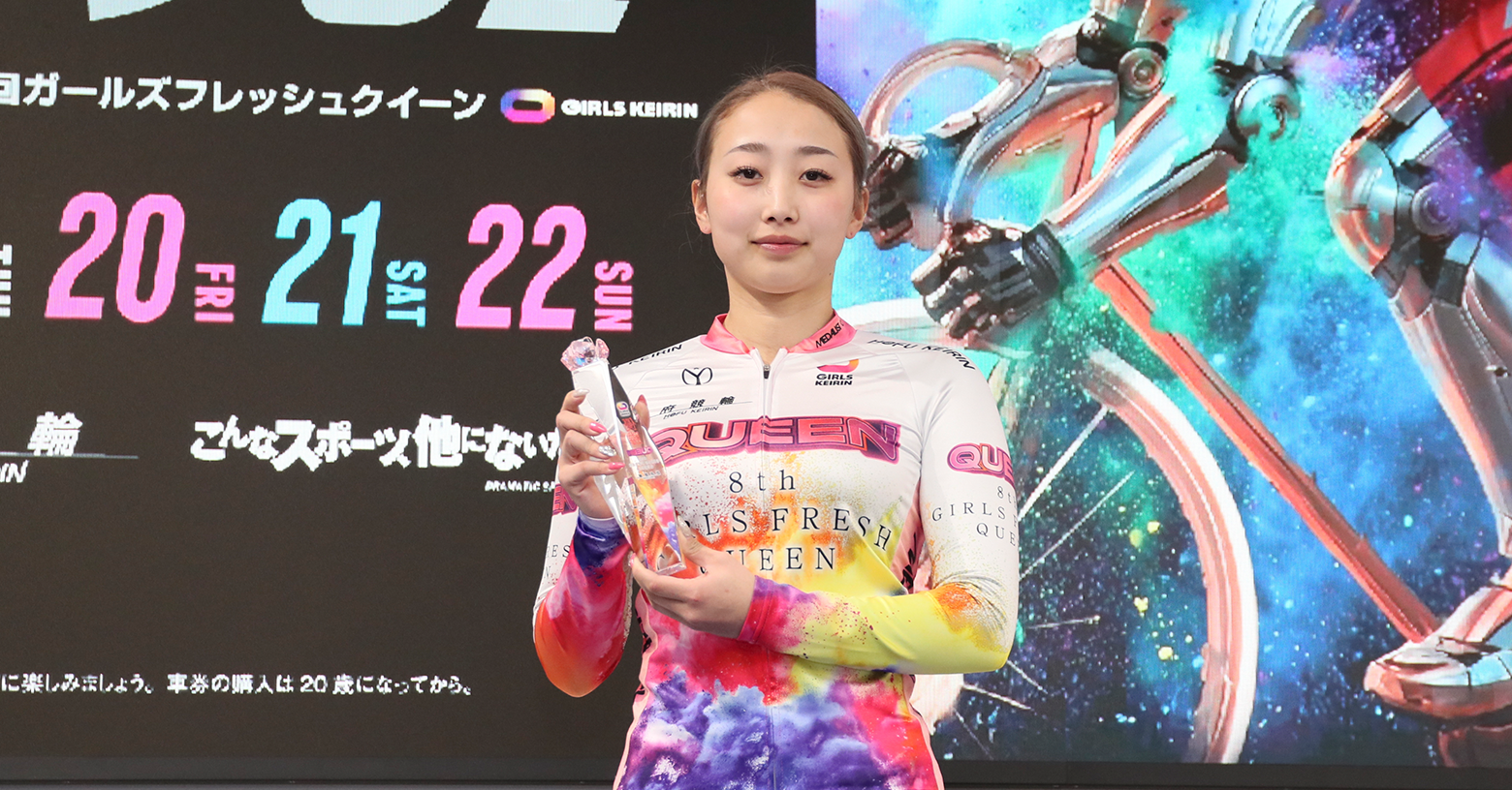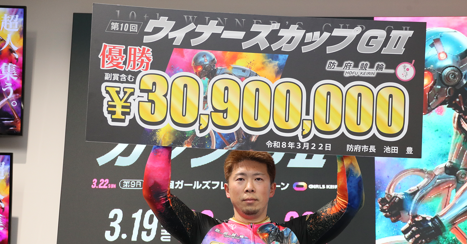 3月22日に防府競輪場で『第10回ウィナーズカップ』の決勝戦、そして『第8回ガールズフレッシュクイーン』が行われた。午後から雨が降り出してあいにくの空模様となったが、全国から集まった7000人近くの競輪ファンが熱視線を注いだ。