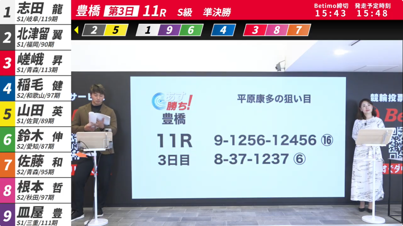 今回の『あす勝ち!』は前検日夜から決勝前夜までの4日間、『Betimo KEIRIN LIVE』は3日目と最終日の2日間放送いたしますのでどうぞお楽しみに!