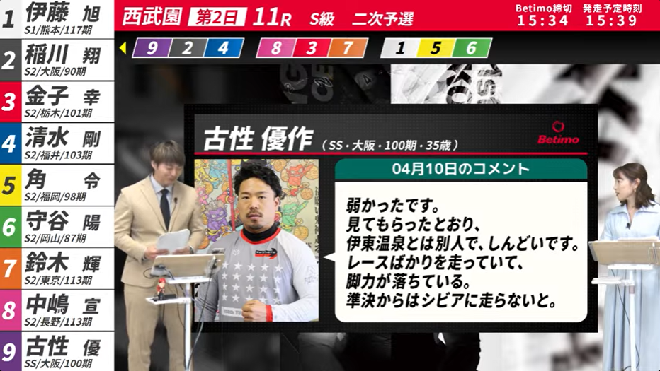 11R二次予選2着・古性優作 苦しい展開、合わされても堪えた強さ