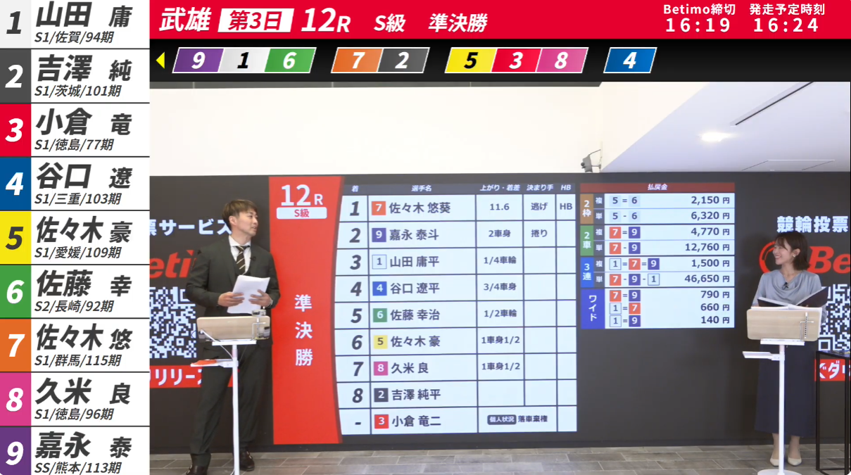 武雄12R決勝・関東は前後で4佐々木悠が前なら先行し2眞杉1着固定