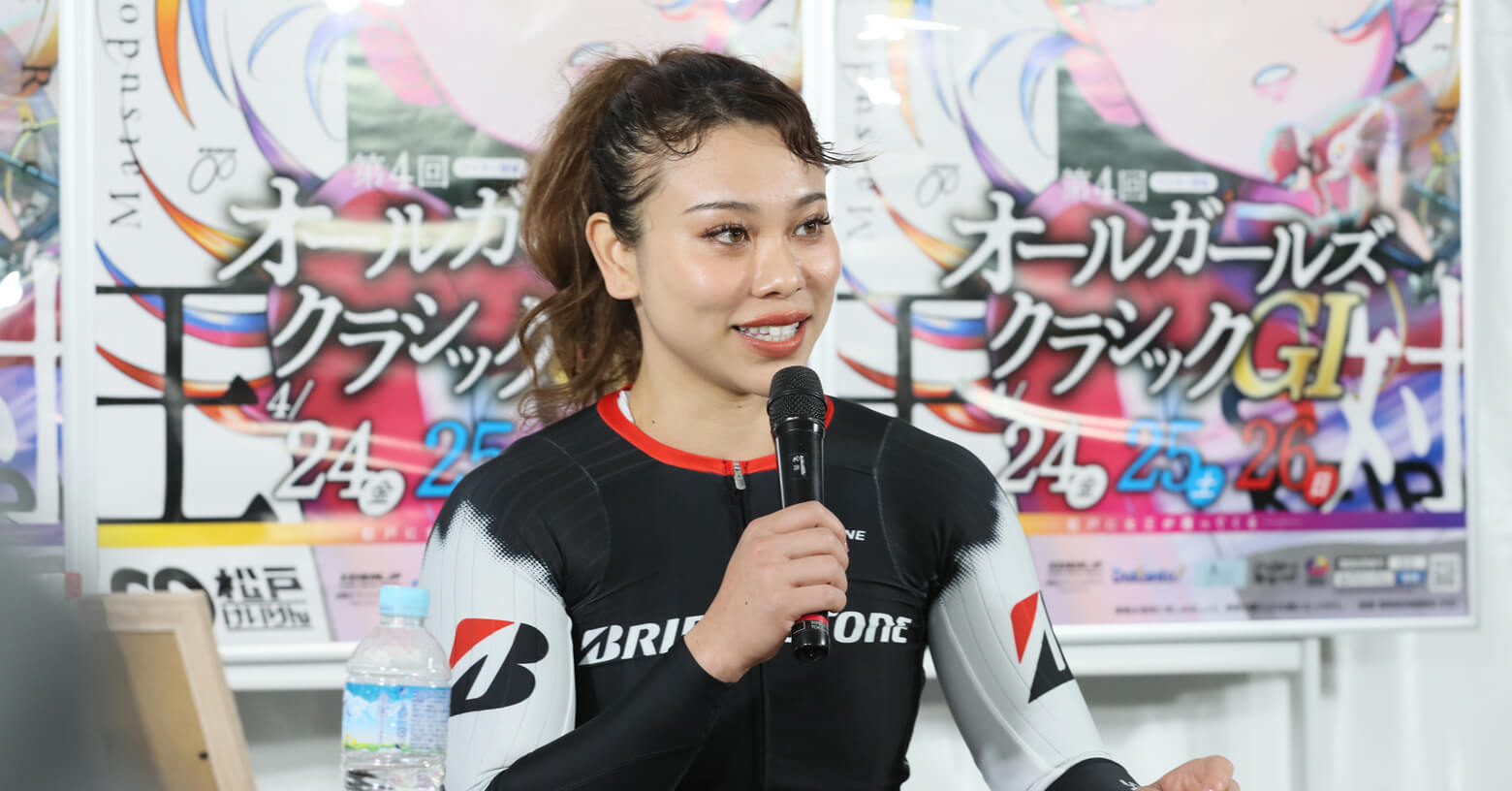 「ダッシュもないし、前の方からスタートしたかったので、思い通りにいきました。後ろもみんな差し脚のある強い選手なので、最後の4コーナーからタレないような踏み方だけを考えていた。自分が出てからは、バック本数がある5番(西脇美唯奈)、4番(加藤舞)だけを見て、あとは(最終)4コーナーに向けて踏み上げる意識でした。ちょっとキツかったけど、振り切れたので(感触は)悪くないのかな」